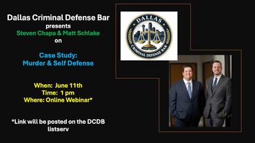 June 11 at 1 pm - Attorneys Matt Schlake and Steven Chapa on Case Study: Murder and Self Defense