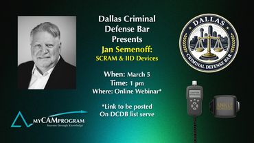 March 5 at 1 pm - Canadian Criminalist Jan Semenoff on SCRAM and IID Issues