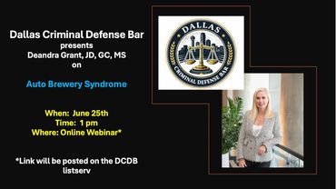 June 25 at 1 pm - Deandra Grant, JD, GC, MS on Auto Brewery Syndrome