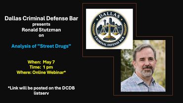May 7 at 1 pm - Forensic Toxicologist Blake Stutzman on Controlled Dangerous Substances: AKA “Street Drugs”